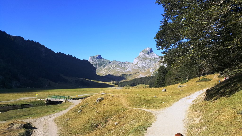 Sortis de la forêt vous vous retrouvez face au Pic du Midi d’Ossau qui vous dominera tout le long de la balade.