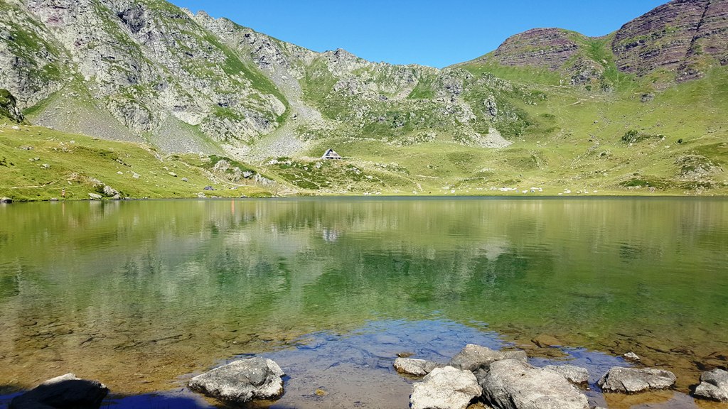 Je m’installe un peu en hauteur pour avoir une vue plongeante sur le Lac. Le refuge d’Ayous est juste à côté ce qui peut-être rassurant.